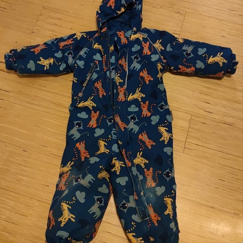 Haalarissa on huppu, vetoketjukiinnitys sekä heijastavat yksityiskohdat näkyvyyden parantamiseksi. Värikäs kuviollinen yläosa ja mustat vahvistetut lahkeet. Lahkeissa jalkalenkit, jotka pitävät haalarin hyvin paikoillaan. Sopii erinomaisesti talveen ja ulkoleikkeihin kylmällä säällä.