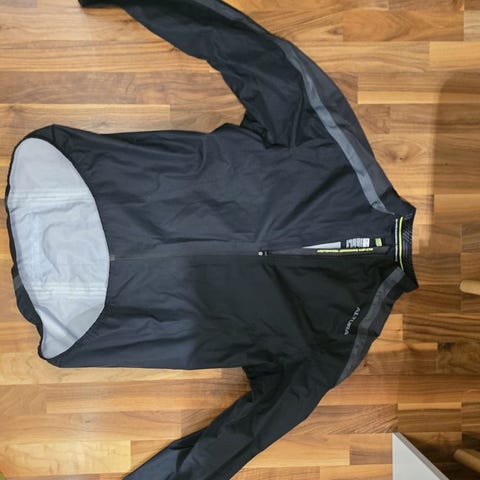 Vettäpitävä ja hengittävä juoksutakki, pyöräilytakki, ratsastustakki, heijastavat yksityiskohdat. Takaosan punainen valo ei toimi.