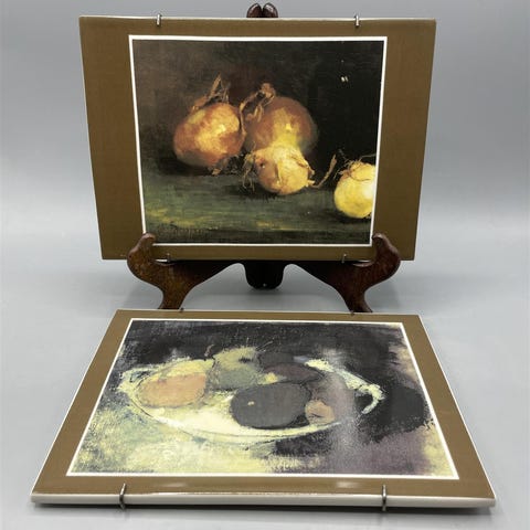 Arabia Helene Schjerfbeck -teemaiset seinälautaset 6kpl. Lautasissa on taiteilijan tunnettuja teoksia, kuten ”Toipilas” ja ”Leikkivät lapset”. Rajoitettu valmistuserä.