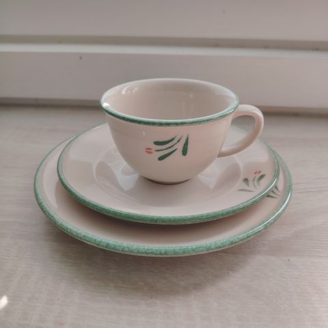 Myydään hyvin vähäisellä käytöllä ollut kahviastiasto. Kuusi kuppi, tassia ja lautasta. Kaupanpäälle sokerikko, jota voi käyttää tarjoilussa vaikka kahvikonvehdeille tai muille herkuille.
