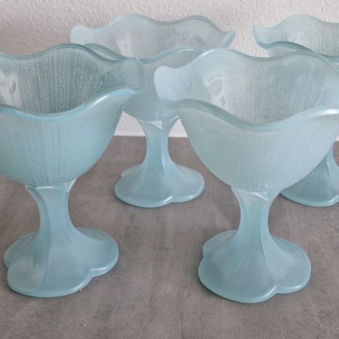 6 kpl jäätelöpikari/jäätelökulho. Korkeus 12 cm, halkaisija leveimmästä kohtaa 10 cm
