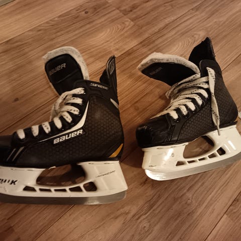 Myydään lasten Bauer NS luistimet. Tarkkaa kokoa en enää muista. Pohjallinen 19cm. Kuvan luistinsuojat kaupan päälle.