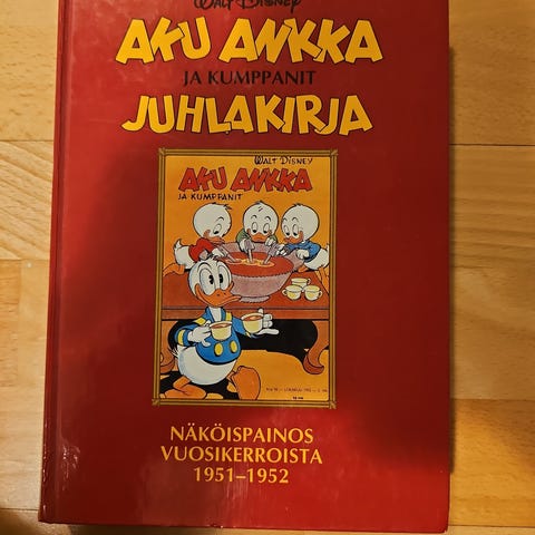 Aku Ankka ja kumppanit juhlakirja, joka on näköispainos vuosikerroista 1951-1952. Kirja sisältää alkuperäisiä Aku Ankka -sarjakuvia kyseiseltä ajanjaksolta. Saa tarjota!
