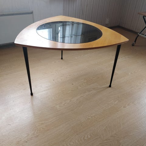 Hieman kaareva, design lasipöytä.