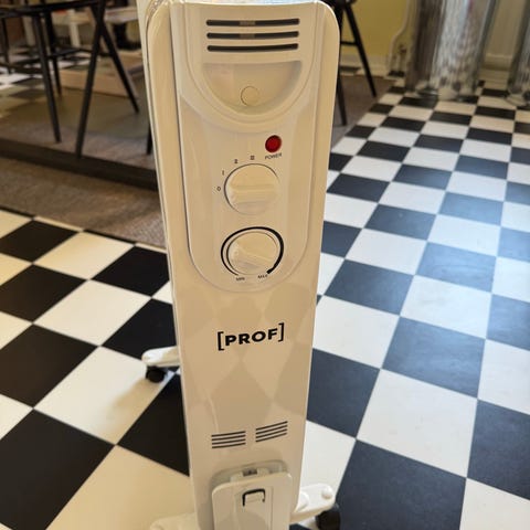 Prof S2628 öljytäytteinen patteri, teho 2000 wattia, käyttöjännite 220-240V, taajuus 50/60Hz. Varustettu säätimillä ja pyörillä helppoa siirtämistä varten. Ollut kerran käytössä juhlatilaa lämmittämässä.Hyvin pelitti!