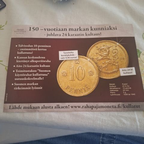 Sydämeltään Suomalainen keräilykolikot setti ( aito 24k kultaus )