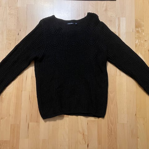Comma musta neule, jossa kaulus ja helma mukana. Kerran käytetty. Koko 42, kainalo-kainalo 55cm ja olka-helma 66.