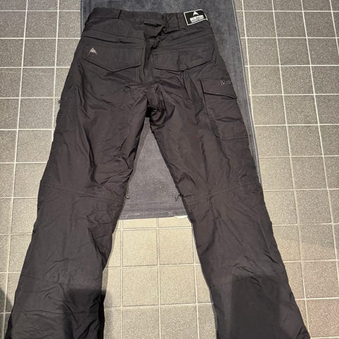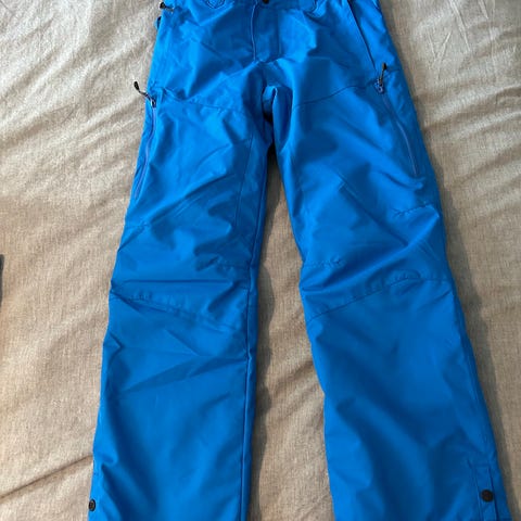 Hyväkuntoiset lumilautahousut. Lumilukot ja vetoketjut lahkeissa.