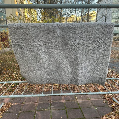 Ihan ok kunnossa oleva matto, käytössä hieman karvat painuneet ja joitain tahroja saattaa olla. Hyvin ajaa asiansa edelleen, uuden tilalta pois.