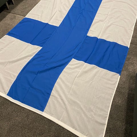 Myyntiin iso Suomen lippu.