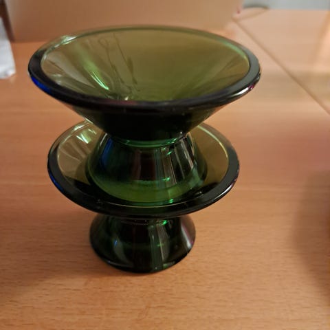 Iittala Kartio lasiset kynttilänjalat sinisessä värissä, 2 kappaletta. Kaj Franckin suunnittelemat, 50mm.