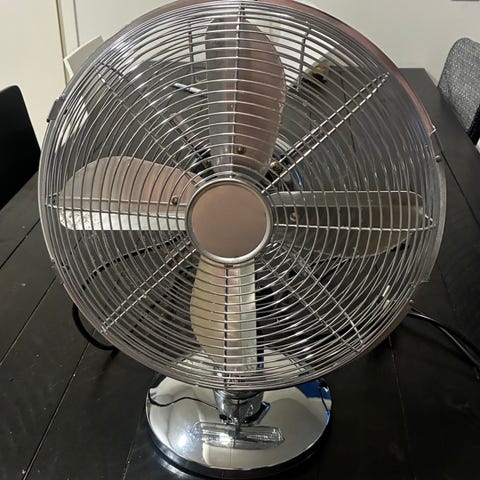 Logik pöytätuuletin, väri valkoinen. Tuulettimessa on nopeusasetukset 0, 1, 2 ja se toimii sähköllä johdon kautta.