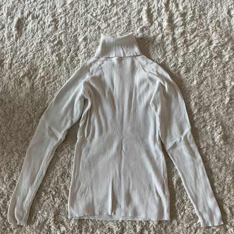 Lyhythihainen harmaa koristeltu poloneule. Öeveys kainaloiden alla 41,5 cm, pituus kainalosta 35,5 cm, pituus niskasta takaa 52 cm