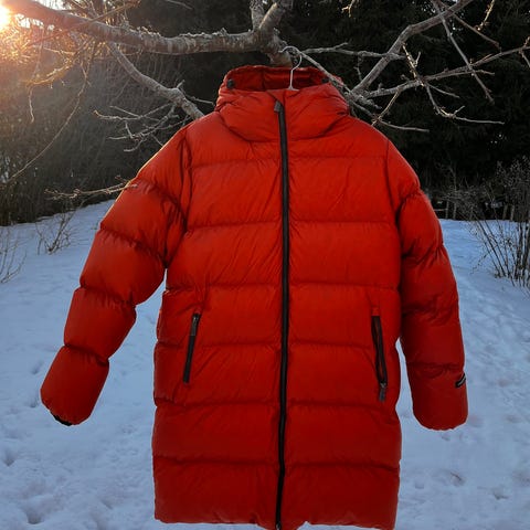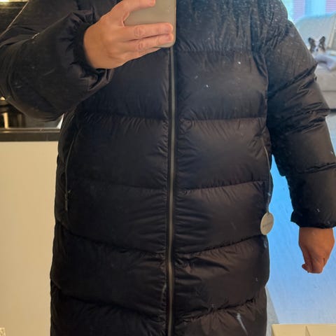 Täysin käyttämätön, kaapin täytteenä ollut naisellinen, hieno untuvatakki, joka joutaa takkipaljouden keskeltä käyttöön.