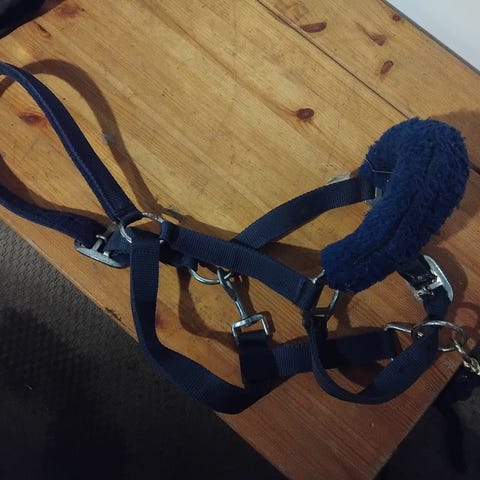 Riimu on ehjä, soljet ja lukko toimii, metalliosissa hieman ruostetta johtuen säilytyksestä ulkona katoksessa.