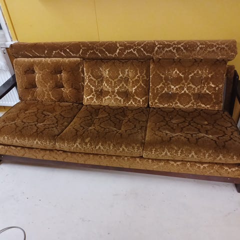Ryhmään kuuluu kahdenistuttava sohva, nojatuoli sekä sohvapöytä. Rungot ruskeaksi petsattua ja lakattua koivua. Tyynyissä musta nahka. Kalusteissa tietenkin normaalia kulumaa mutta kaiken kaikkiaan kunto todella hyvä. Runkojen vyöt suurimmalta osin alkuperäiset mutta ne on pingotettu uudelleen. Sohvaan on jossakin vaiheessa vaihdettu osa vöistä (katso kuva). Tyynyjen nahkat ehjät ja hyvässä kunnossa. Runkojen pohjasta löytyy leimat; "nro -81". Sohvapöydässä ei leimaa vaan merkintä; "81.". En löytänyt tietoa mitä nuo tarkoittaa mutta veikkaisin että voisi olla valmiste-erän numero. Sohvasta sekä nojatuolista löytyy myös Asko-tarra. Kalusteiden mitat: Sohva, K73cm, L131cm, S80cm. Nojatuoli, K73cm, L80cm, S80cm. Sohvapöytä, K50cm, L75cm, S75cm.