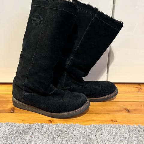 Käytetyt,nahkaiset matalakorkoiset saappaat.Vetuketjun kiinnitys kohdan vieressä (sisäpuolelle jäävä osa johon vetoketju on ommeltu)nahkapinnoite paikoin irtoillut vuorikankaasta. Ei näy kenkien ollessa jalassa. Huomioitu hinnassa/ kuntoluokituksessa. Muuten vielä siistit.