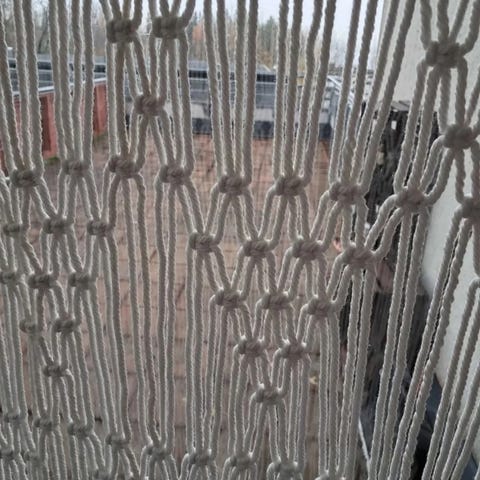 Itse tehty makrame- seinäkoriste. Valot saa mukaan halutessaan.