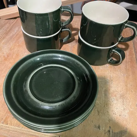 Myydään kuvissa olevat vihreä Arabia Kerho-sarjan kupit ja tassit