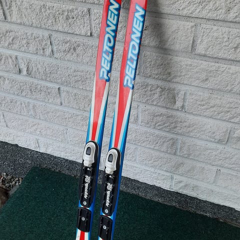 Madshus pitopohjasukset 110 cm ja sauvat 90 cm. NNN side.