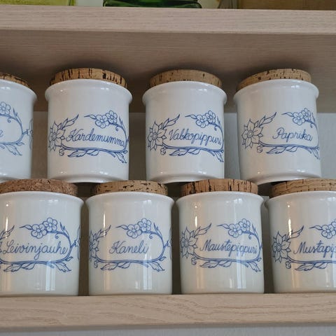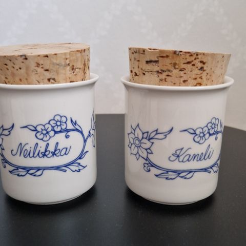 4 kpl Raija Uosikkinen Sininen keittiö, 1984- 1993, 2 kpl Suola,Kaneli, Vanilja