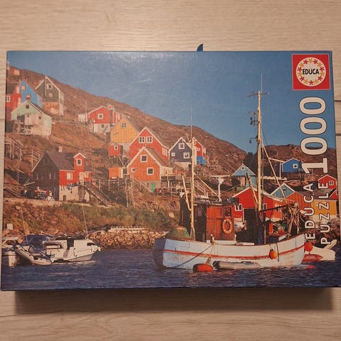 Kerran koottu 500 palan palapeli. Kaikki palat tallella.