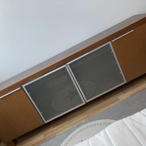 Senkki lasiovilla ja yllättävän tilavalla laatikolla.
