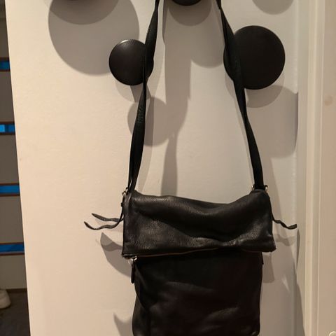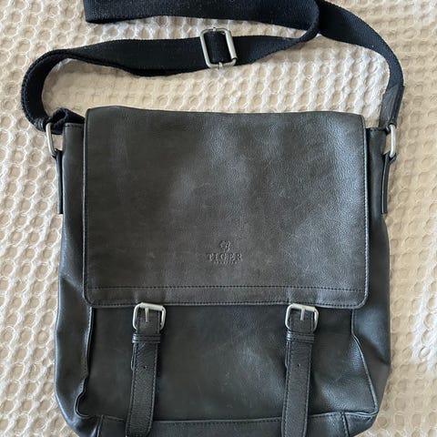 Naisten Olkalaukku. Nahkaa. Merkki Tiger of Sweden. Korkeus 28 cm ja leveys 25 cm. Molemmissa ulkoreunoissa taskut. Sisällä vetoketjutasku.Tarvittaessa kulkeutuu Ouluun.