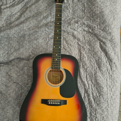 Myydään vähällä käytöllä ollut puoliakustinen kitara. Soittoa ei ole ollut paljon mutta ikää on sen verran että virittimien muovinupit ovat haurastuneet ja pari lohjennut irti. En osannut laittaa uusia itse paikalleen. Muuten siistissä kunnossa.
