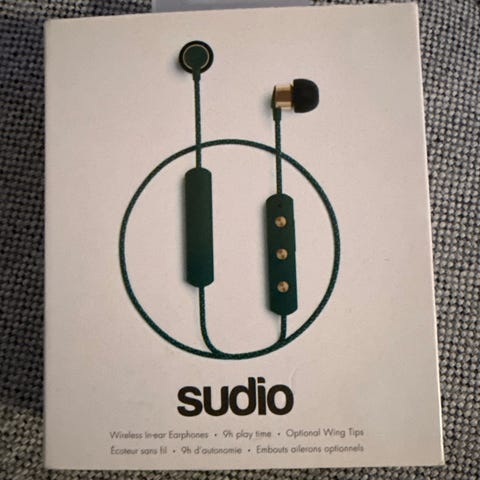 Langattomat Sudio nappikuulokkeet. Äänenlaatu ja basso ovat ihan hyvät ja yhdistettävissä mihin tahansa puhelimeen helposti bluetoothin kautta. USB-C latausportti. Kunto on aivan kuin uusi. Alkuperäistä pakettia ei ole. Alkuperäinen hinta on noin 35€.