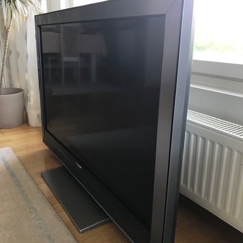 Sonyn TV, en tiedä mallista sen enempää. 50 tuumainen. Ollut käyttämättömänä varastossa 1,5 vuotta ja palautin tehdasasetukset. Toimii normaalisti. Mukaan tulee virtajohto ja TV:tä varten itse rakennettu jalusta. Kaukosäädin ei tule mukaan.