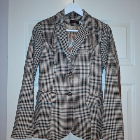 Naisten laadukas bleiseri / jakku kokoa 36/S. Väri musta, kuvioitu kangas.