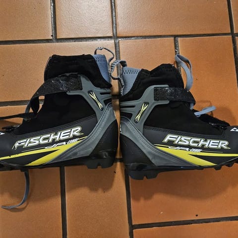 Fischer Jr combimonot, jotka sopivat vapaan ja perinteisenkin hiihtoon. Koko 35. Hiihtomonot käyvät NNN siteisiin. Käytön jälkeä jonkun verran, mutta vielä hyväkuntoiset luistelumonot seuraavalle.