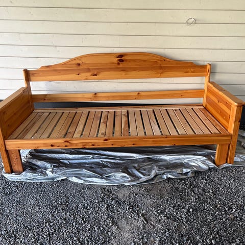 Tässä tarjolla vuodesohva, jolle ei tullutkaan käyttöä meillä.