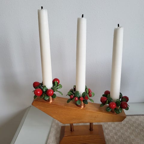 Pieni kynttelikkö. Koko leveys 16cm, korkeus 13cm. Nouto tai 5e ja suuremmat ostokset voin postittaa. Halutessasi samaan toridiili- / postipakettiin voi kerätä useamman tuotteen ja maksaa ne kerralla, niin tulevat kaikki samassa paketissa. Laita viestiä torin kautta, jos haluat ostaa samaan pakettiin muuta.