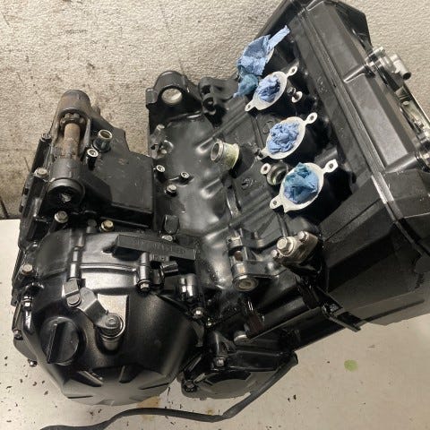 Moottori vuoden 1998 65000 km ajetusta ZX11 pyörästä. Moottori itsessään oikein hyväkuntoinen mutta vaihteistossa vikaa niin että kolmosvaihdetta ei pysty käyttämään.