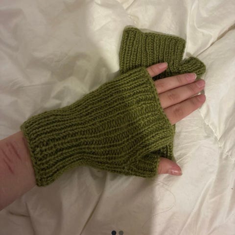 Erittäin hyväkuntoiset oliivinvihreät kynsikkäät 100% villaa. Alle mahtuu hyvin esim sormikkaat tai vaikka nahkahanskat. Postitus onnistuu