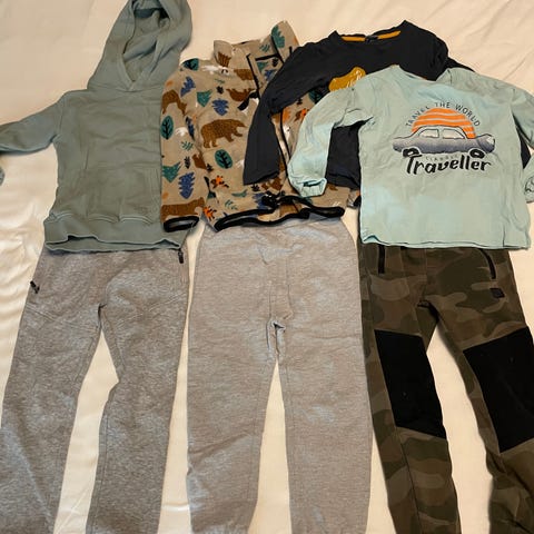Pinkkejä huppareita neljä eri koossa välillä 120-134. Pari enemmän ja pari vähemmän pidettyä.