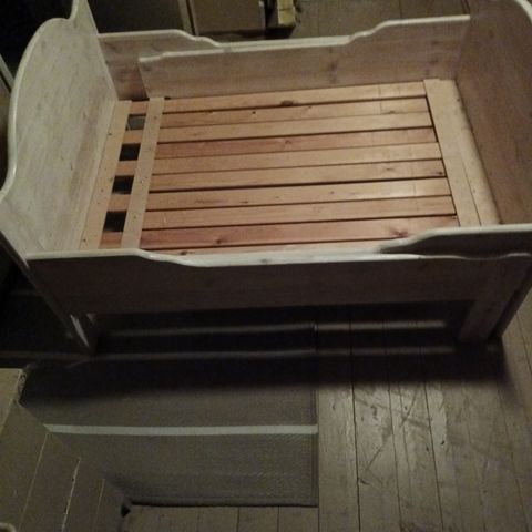Ikean Minnen jatkettava sänky (lev. 80cm). Alareunassa joku pieni osuma, muuten mielestäni vielä aivan siisti. Näkyy kuvassa jalkopäässä. Sälepohja ja jatkettava patja tulee mukaan.