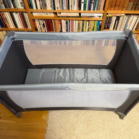 Uutena ostettu v.2022 ja vähän käytetty matkasänky alle 14kg lapselle. Sisältää kokoamisohjeet. Säilytetty sisällä, ei lemmikkejä. Säilytyspussi mukana. Vain nouto.