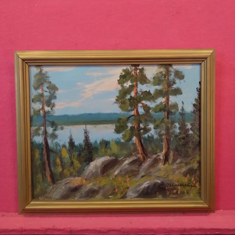 Viljo Laaksosen öljyvärimaalaus levylle. Koko kehyksineen 36 x 44 cm.