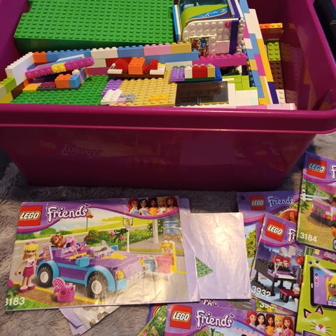 Sekalaisia Friends legoja, joista saa useita settejä. Lajiteltu väreittäin omiin rasioihin. Ohjeet tallella.