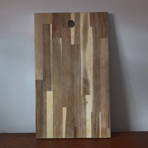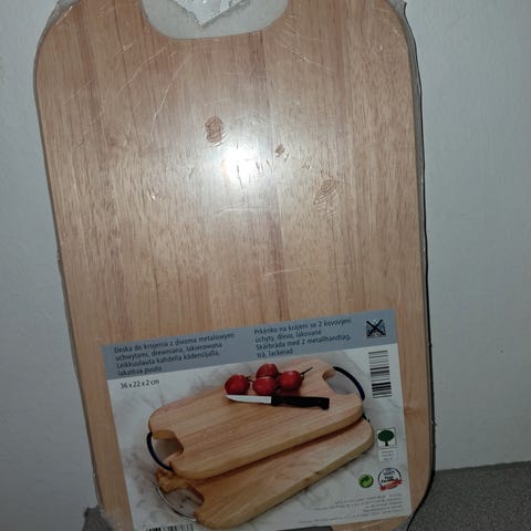 Ikean leikkuulauta, poikittain keittiön vetolaatikkoon. Puuta, kehys muovia. Laudassa vähäistä käytönjäljeä, muoviosassa yhdessä kulmassa kaksi pientä naarmua, yleisilme kuitenkin siisti. L 55 cm, S 27 cm, K n 2 cm.