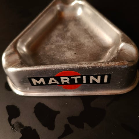 Martini alumiininen tuhkakuppi. Mahdollisesti 1970-luvulta. Hyväkuntoinen ikäisekseen, kuvat kaikilta kolmelta eri puolelta.
