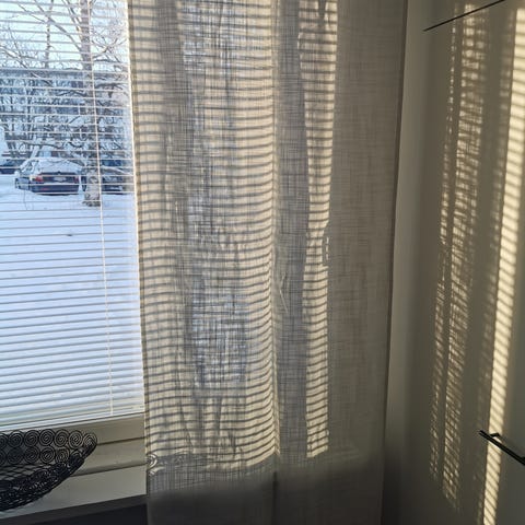 Siistit valkoiset puuvillaverhot. Hieman läpinäkyvät.