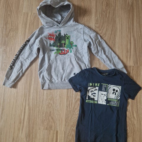 Kaksi t-paitaa ja yksi huppari, kaikki kokoa 140.