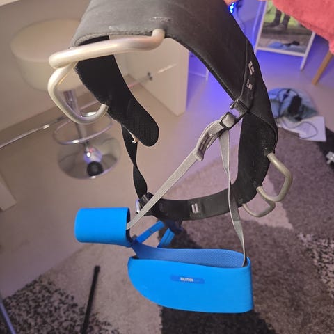 Mukava ja tilava kiipeilyreppu. Tilaa köydelle ja kaikelle muulle tarvittavalle. Köydelle oma suojakangas, toimii hyvin maastossa.