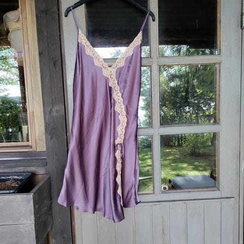 Scarlett Gasquen edestä auki oleva lyhyt night slip 💗 Tosi söpö. 100% silkkiä, kirjailu polyesteriä. Koko XS. Olka-helma n 78 (säädettävät olkaimet) ja kainalo-kainalo n 38.