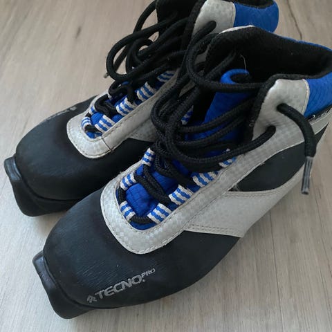 Lasten Tecnopro ultra junior -monot. Mustat/tummanharmaat. Kokoa 37 1/3. SNS -kiinnitys. Hyvässä kunnossa.