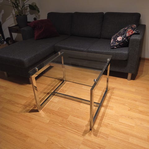 Pikku pöydät lasi halkaisija 45cm korkeus 53cm. 1 kpl 40€, 2 kpl 70€